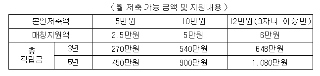 올해는 3년 또는 5년 간 정기적으로 저축할 수 있으며, 월 5만 원~12만 원까지 본인이 선택해 적립 가능하니 첫 선택만 잘하시면 되십니다.
